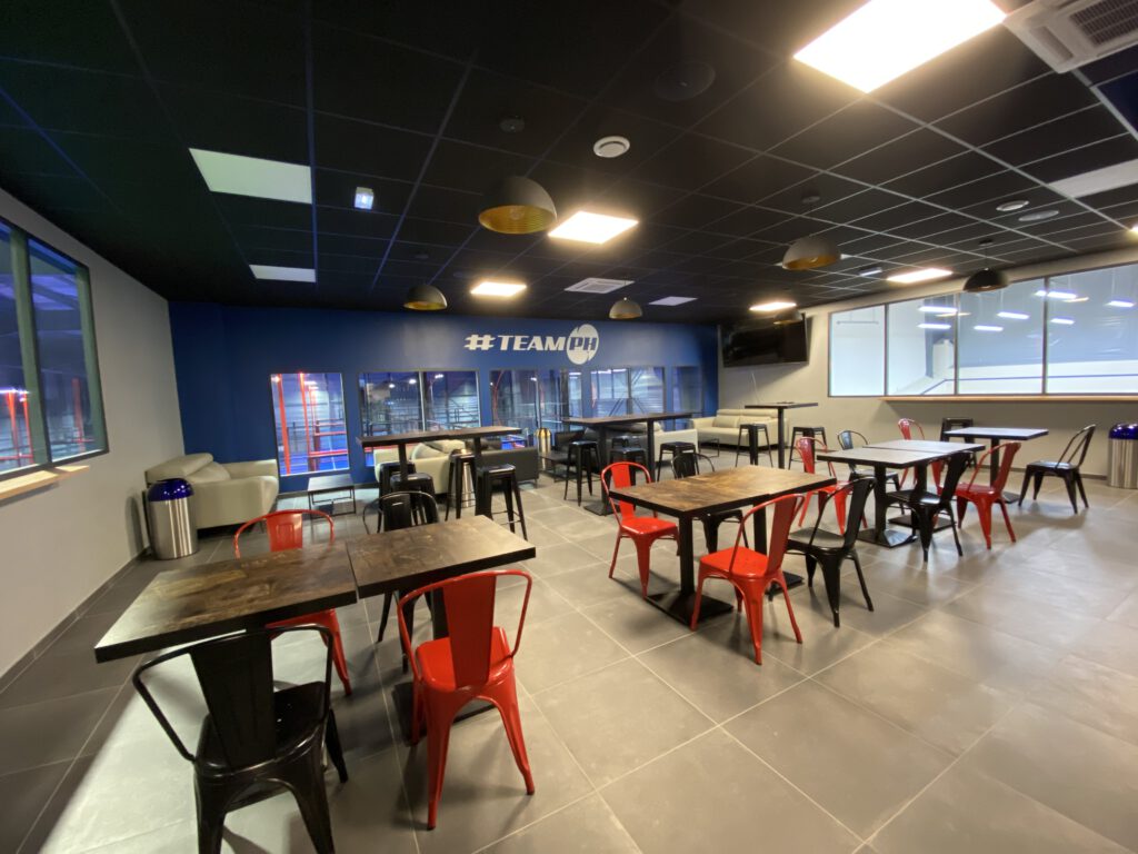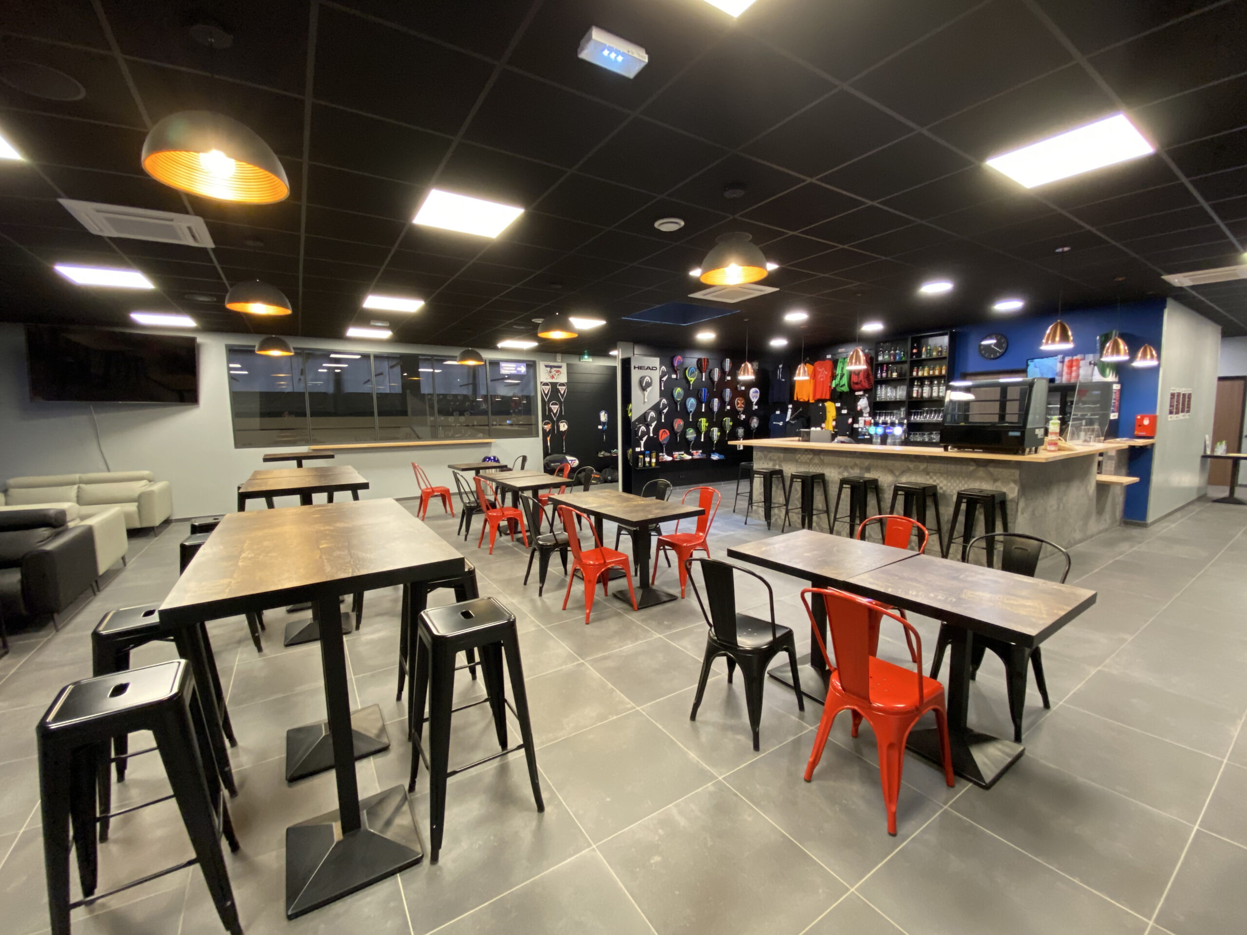 Le club house de 150m2, équipé d’une télévision connectée pour les retransmissions d’événements sportifs, propose un espace bar/restauration.